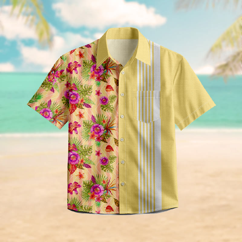 Men's Hawaiian Marine Life & Plants Print Casual Short Sleeve Shirt