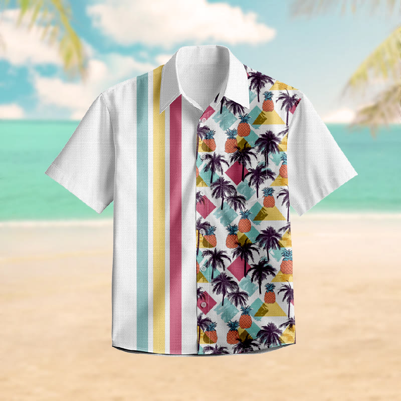 100% Cotton Rainbow Pineapple Palm Print Short Sleeve Shirt