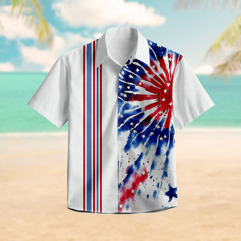 100% Cotton Firework-like American Flag Print Short Sleeve Shirt