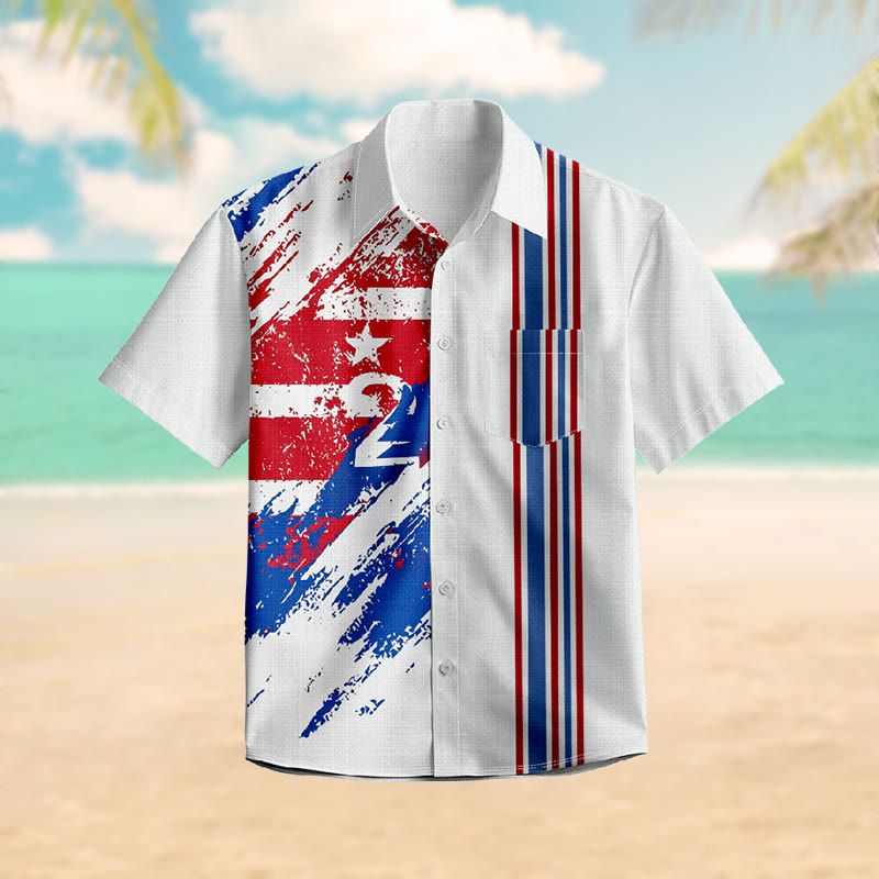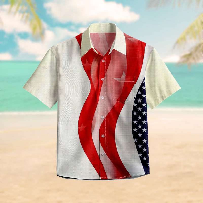 100% Cotton Star-spangled Waves Print Short Sleeve Shirt