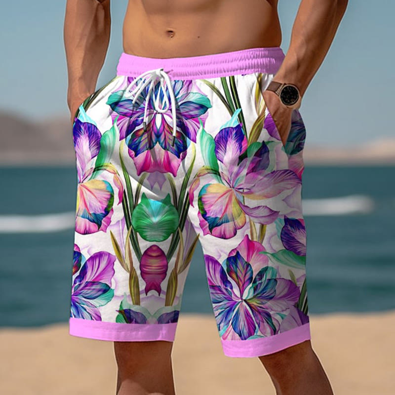 Men's Art Floral Hawaiian Resort Casual Print Shorts
