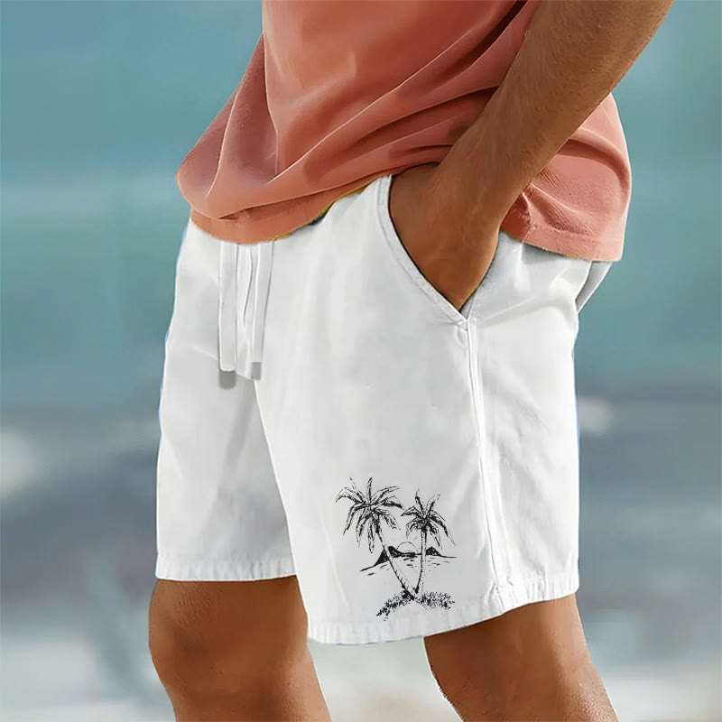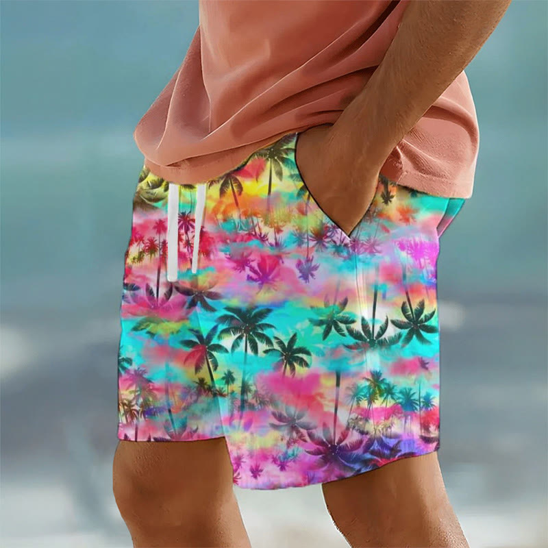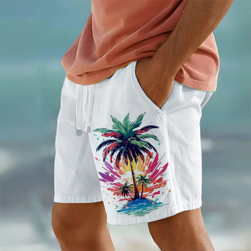 Casual Men's Hawaiian Coconut Tree Island Print Beach Shorts