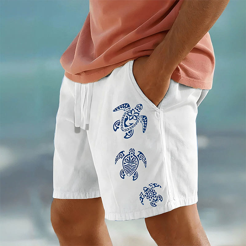 Casual Men's Hawaiian Simple Totem Turtle Print Beach Shorts