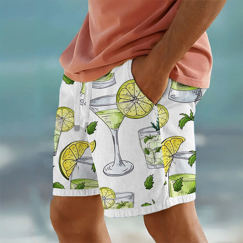 Summer Men's Hawaiian Seaside Mojito Print Casual Shorts