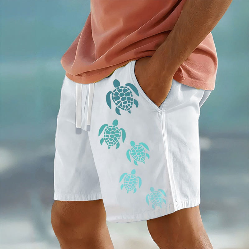Summer Men's Hawaiian Simple Turtle Print Casual Shorts