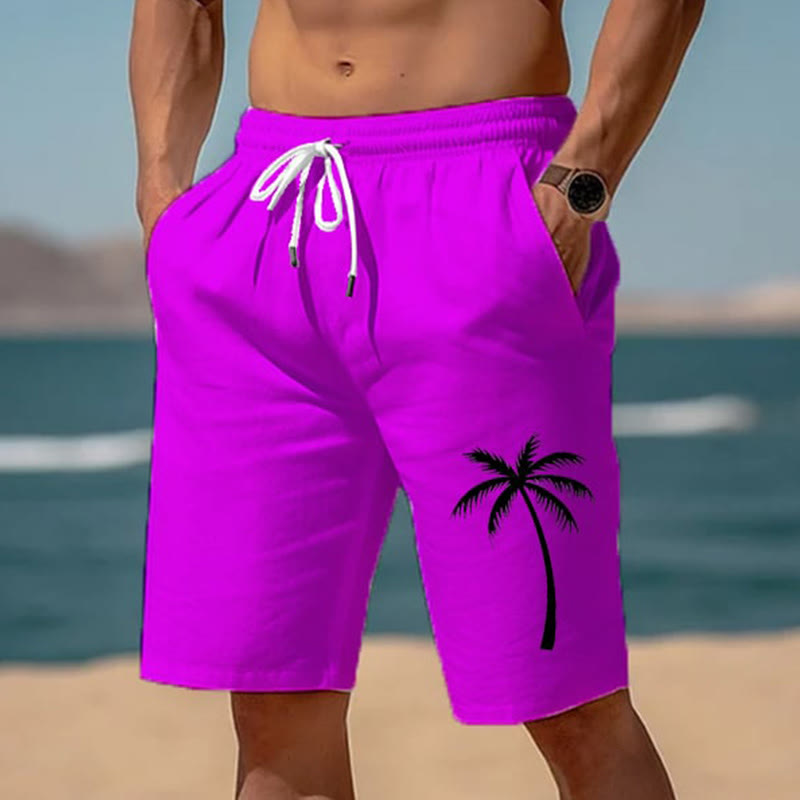Casual Men's Hawaiian Simple Palm Tree Print Beach Shorts