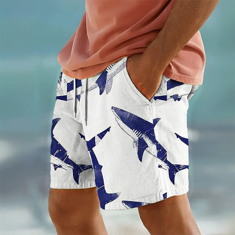 Men's Shark Print Summer Casual Resort Shorts