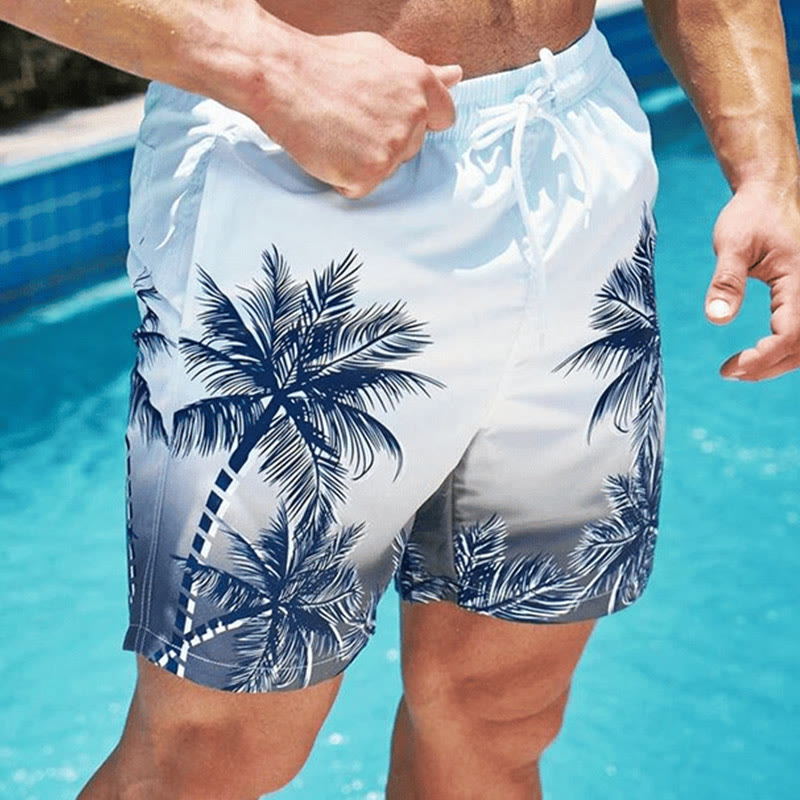Summer Men's Palm Tree Print Beach Shorts