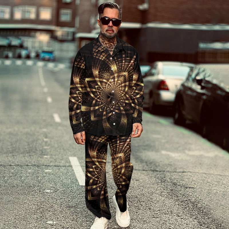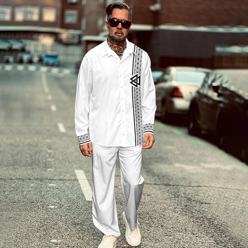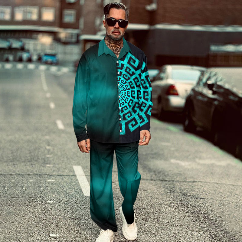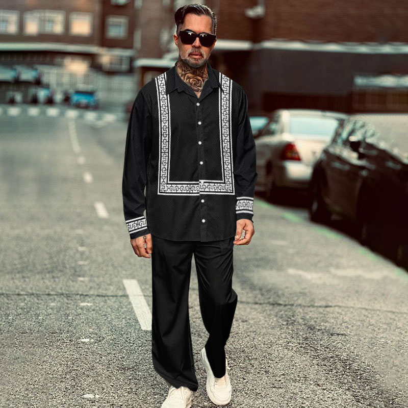 Men's Casual Ethnic Print Long Sleeve Shirt Set