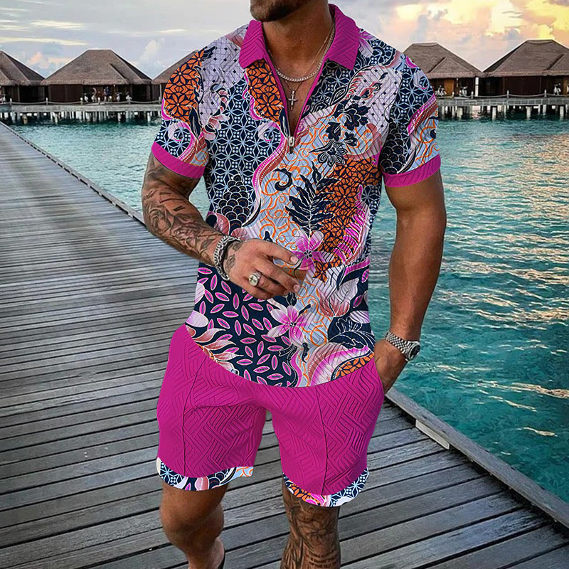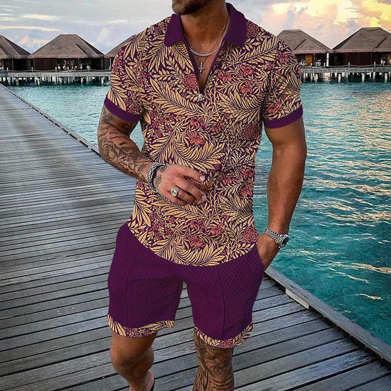 Men's Snapdragon Print Casual Short-sleeved Polo Set