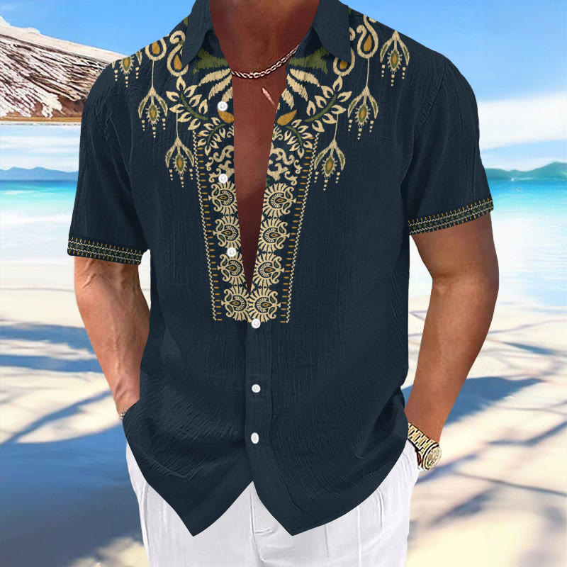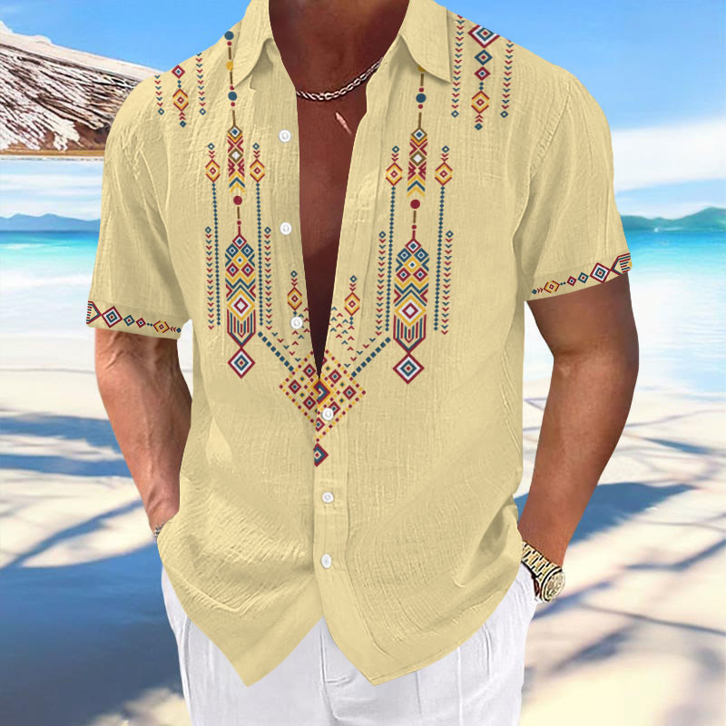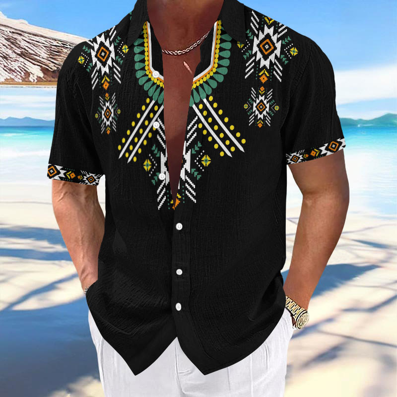 Men's Casual Retro Ethnic Print Short Sleeve Lapel Shirt