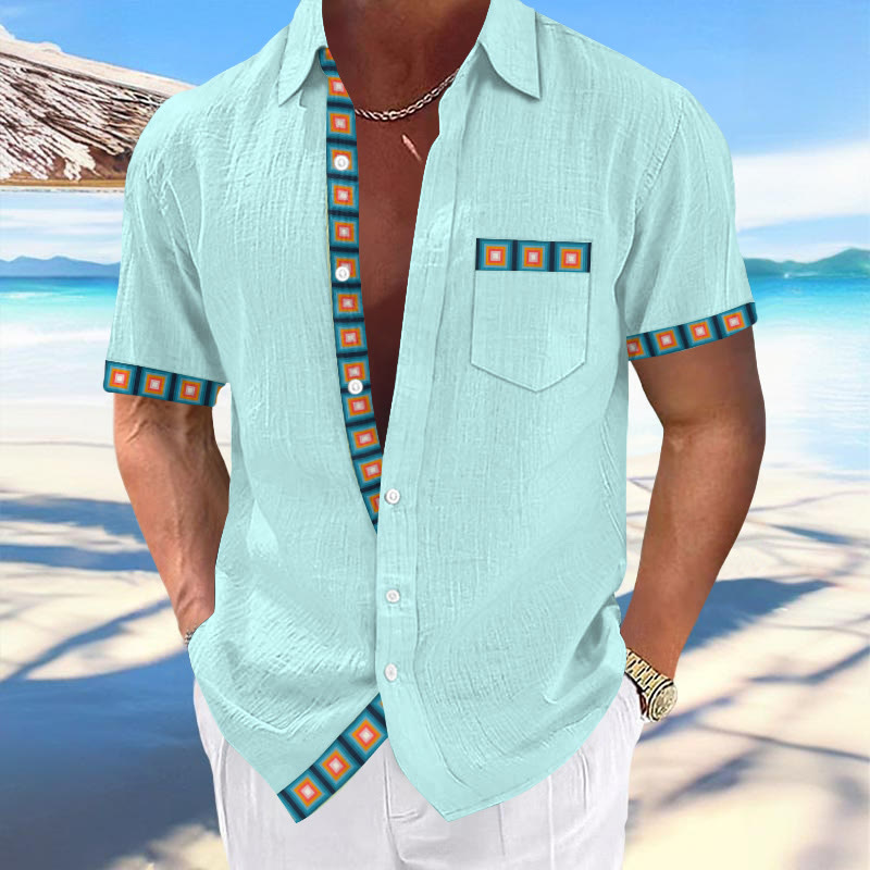 Resort Contrast Geometric Print Short-sleeved Shirt