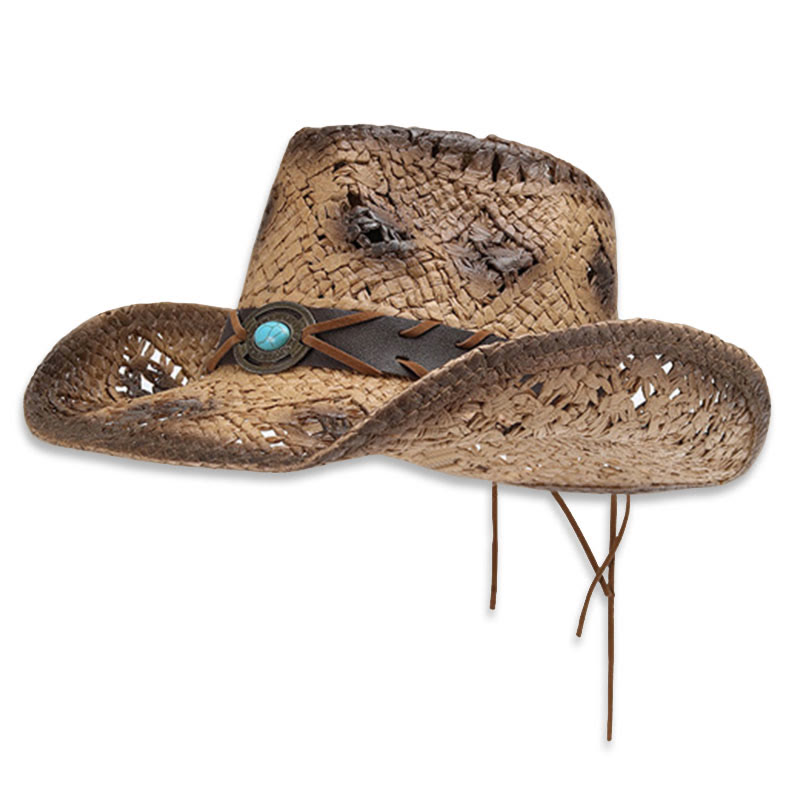 Retro Hollow-out Baking Paint Cowboy Western Summer Straw Cowboy Sun Hat