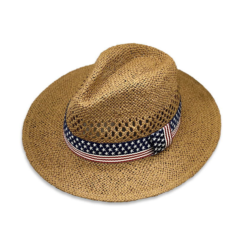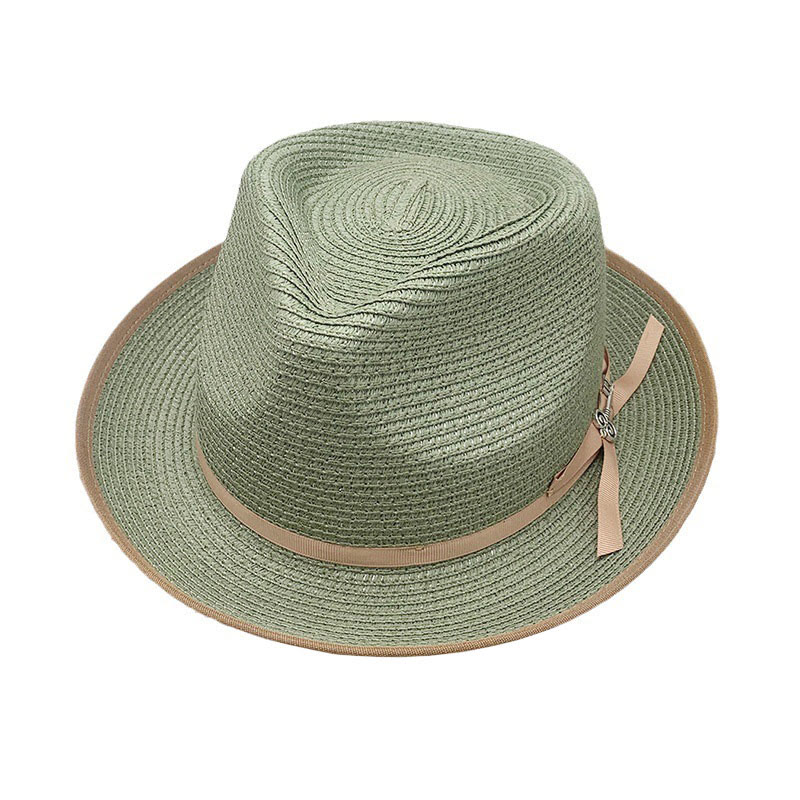 Straw Handmade Woven Binding And Color Matching Design Sunshade Jazz Straw Hat