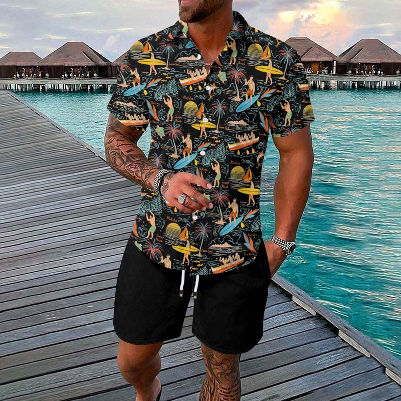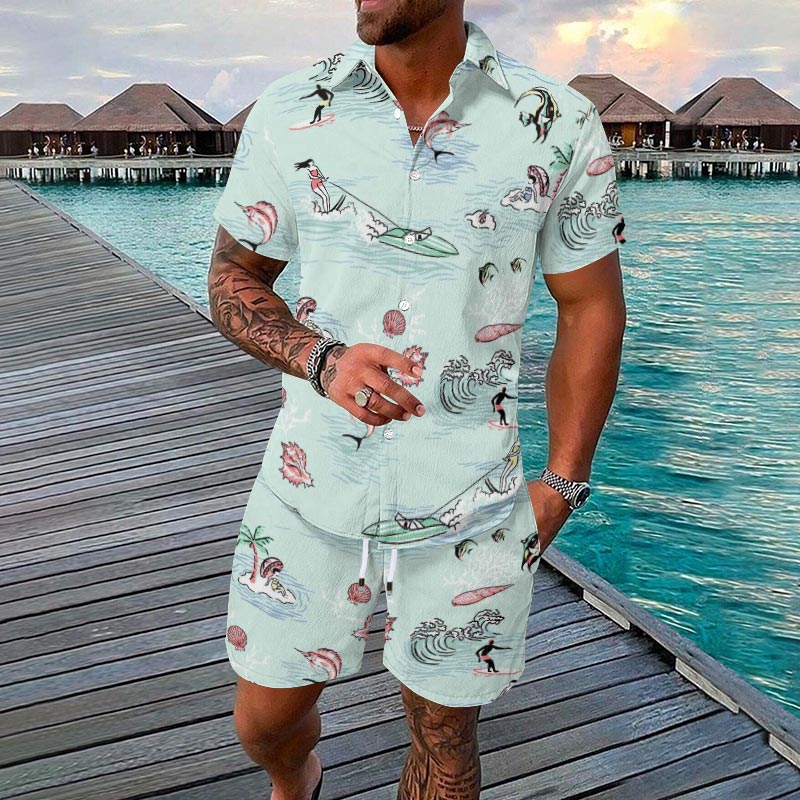 Vacation Surf Coastal Printed Casual Short-sleeved Hawaiian Shirt Set