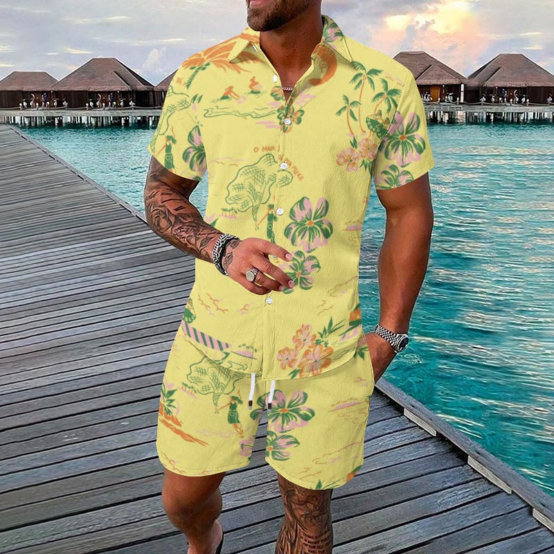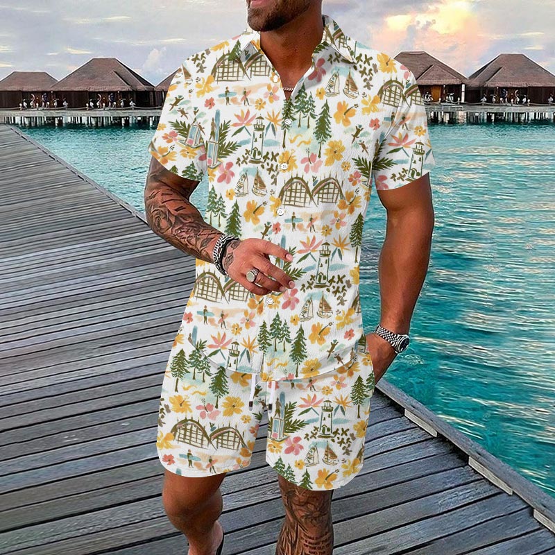 Vacation Island Style Printed Casual Short-sleeved Hawaiian Shirt Set