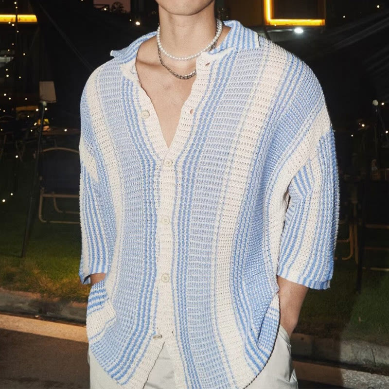 Vacation Striped Hollow Knitted Shirt