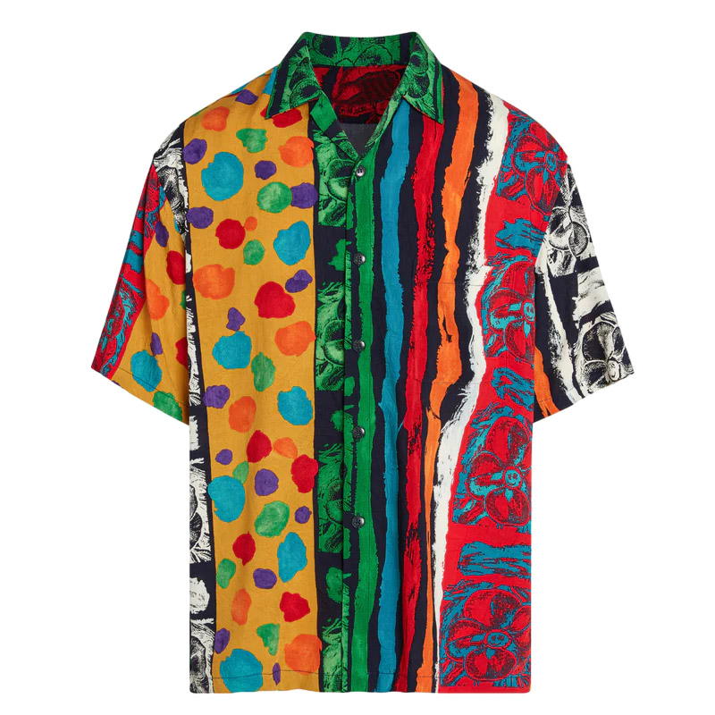 100% Cotton Men's Multicolor City Pop Print Short Sleeve Shirt