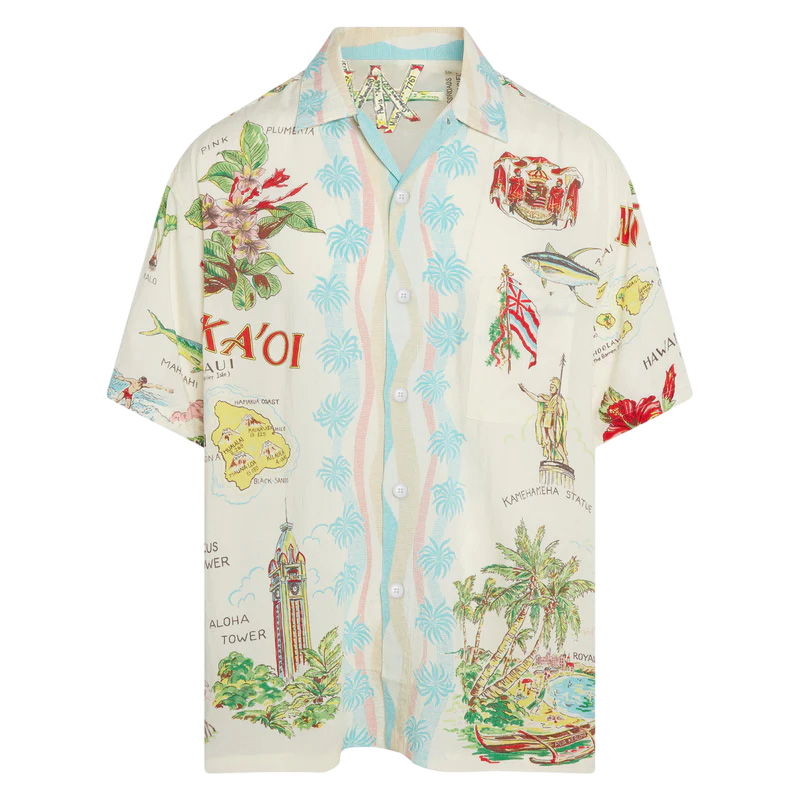 100% Cotton Men's White Hawaii Pop Print Short Sleeve Shirt