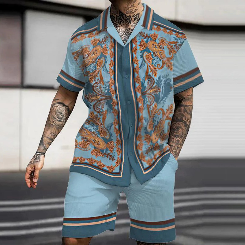 Vintage Court Style Print Short Sleeve Shirt Set