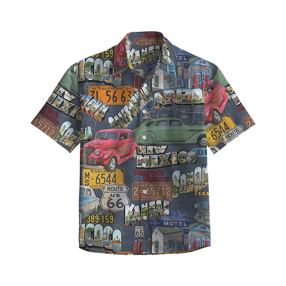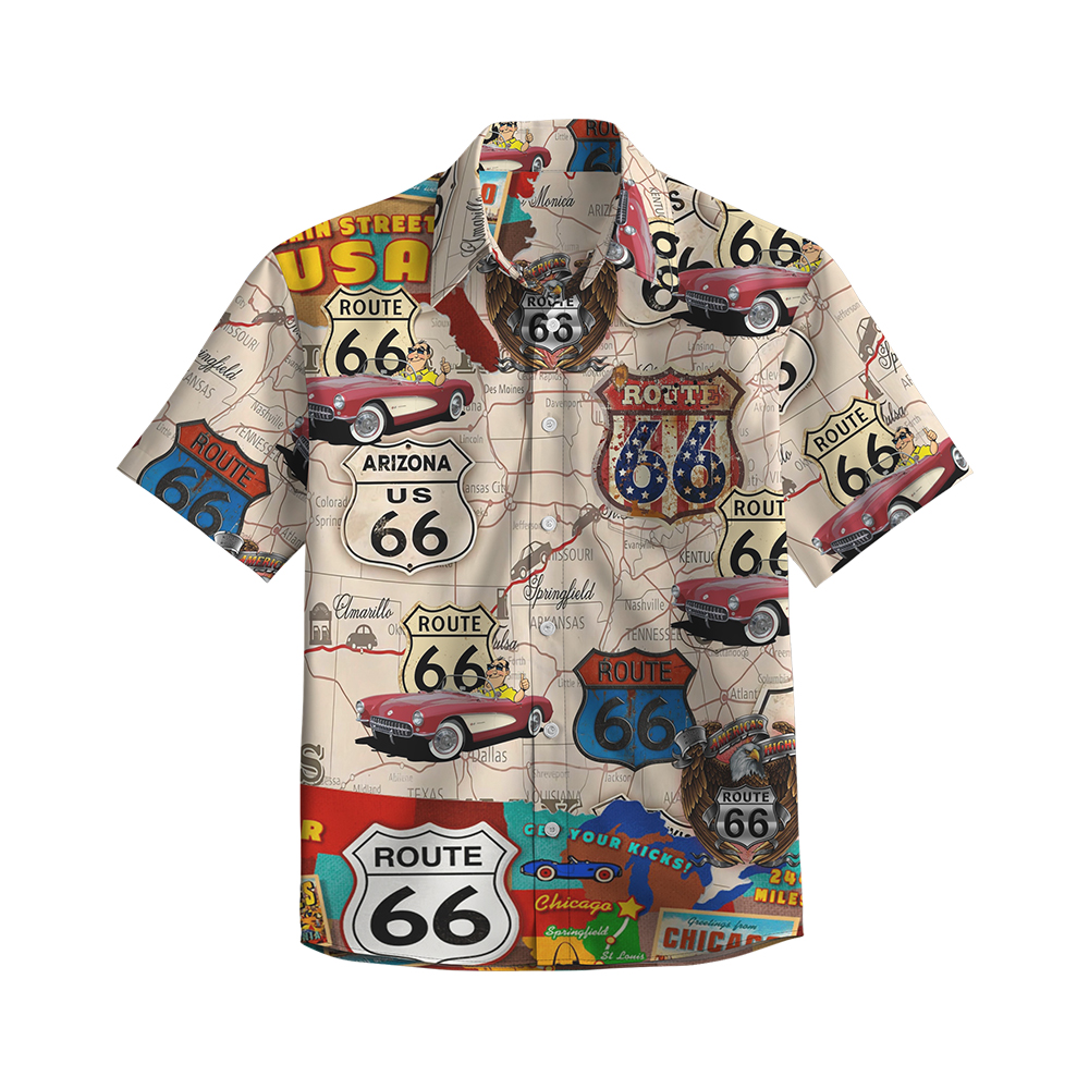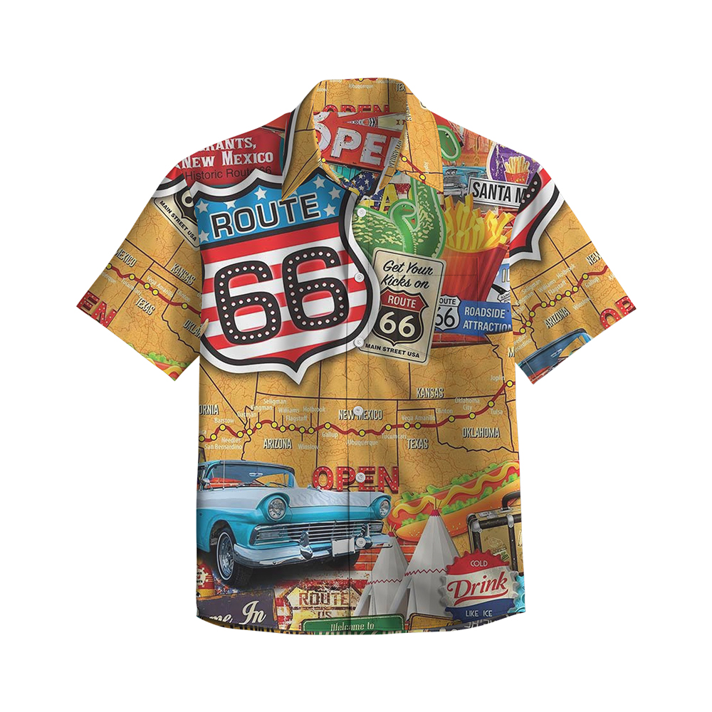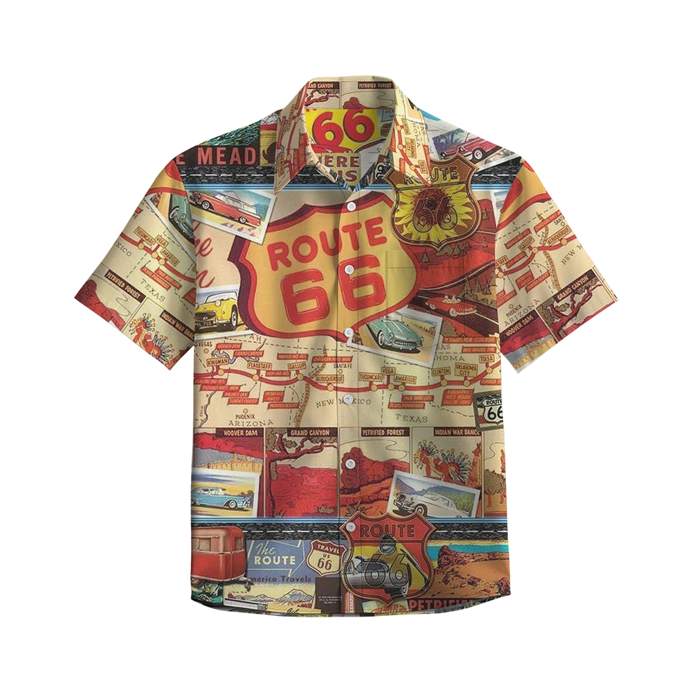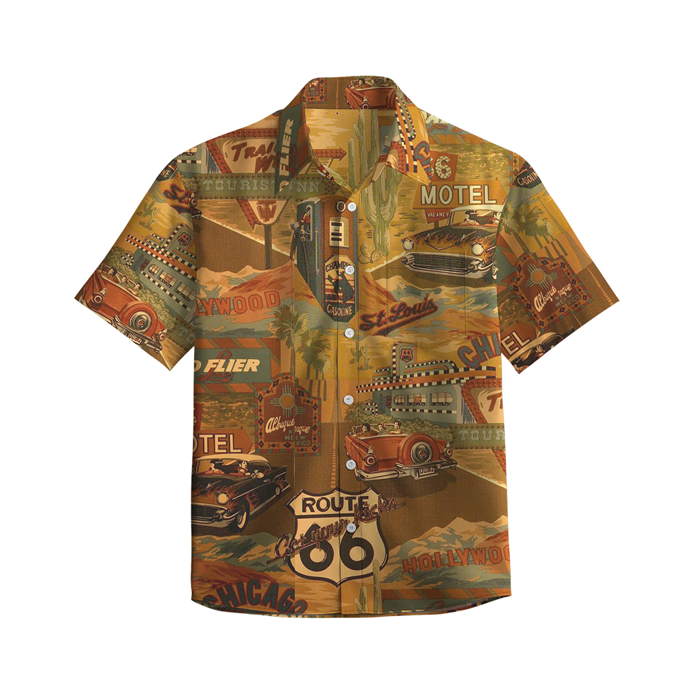 100% Cotton Men's Multicolor Road 66 Pop Print Short Sleeve Shirt