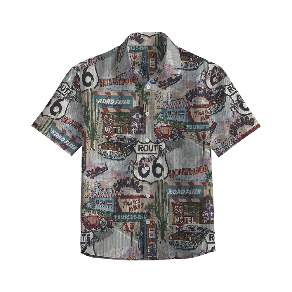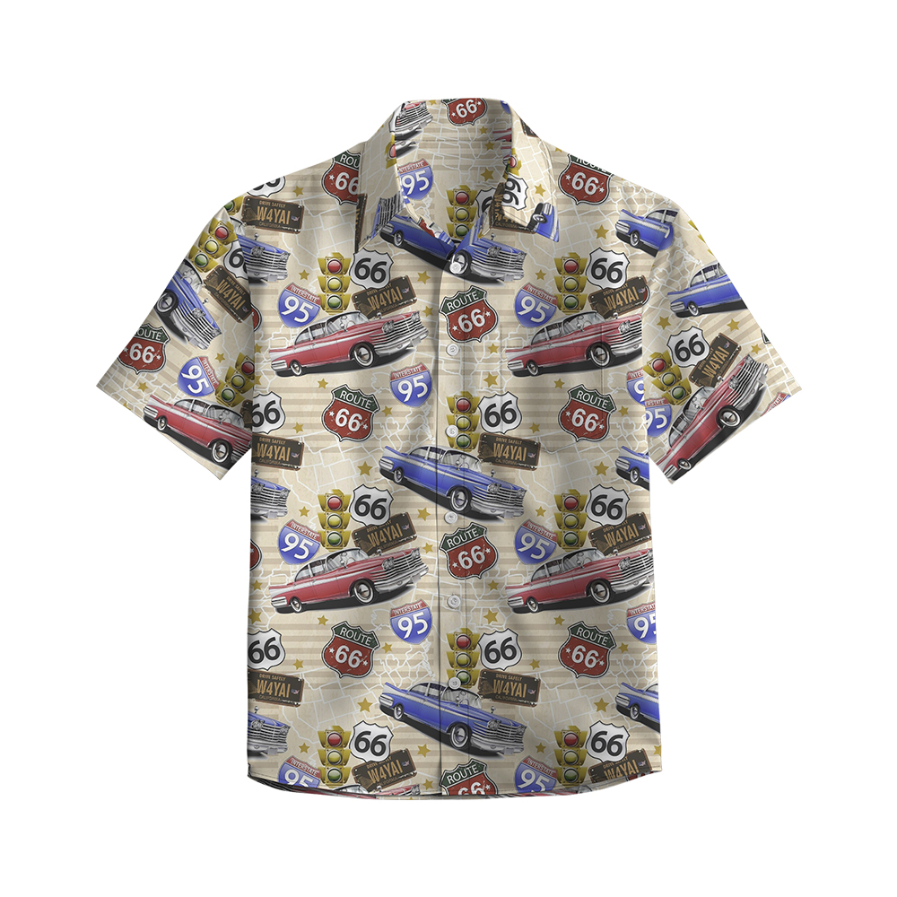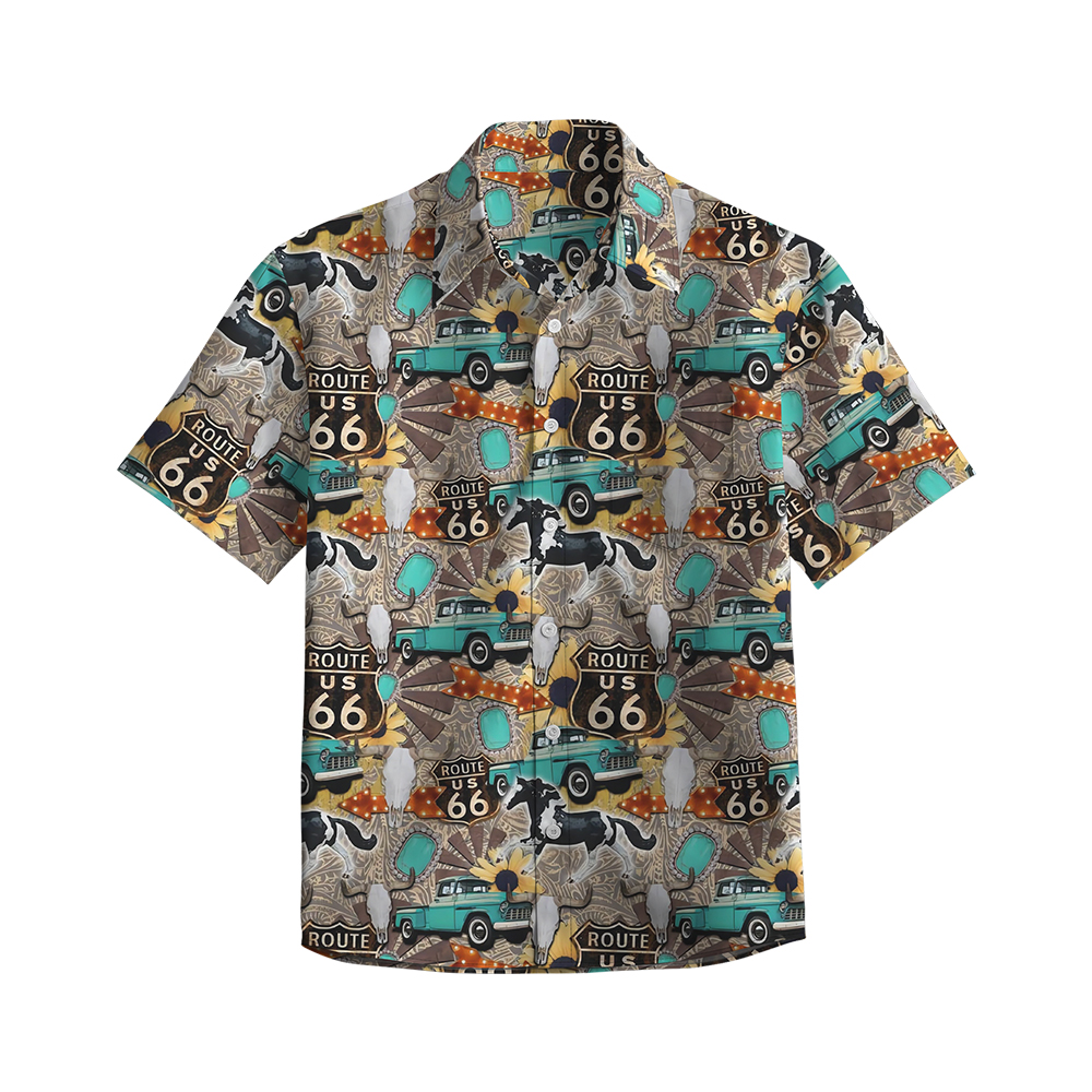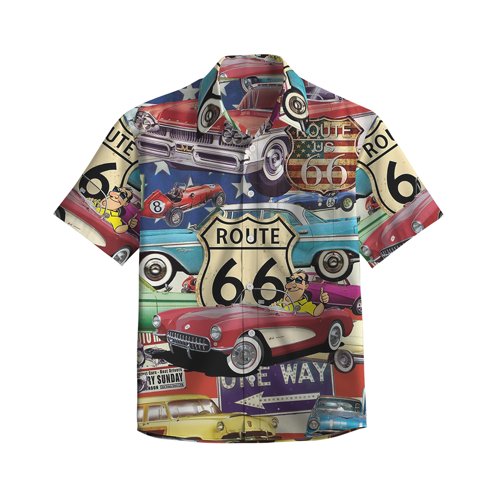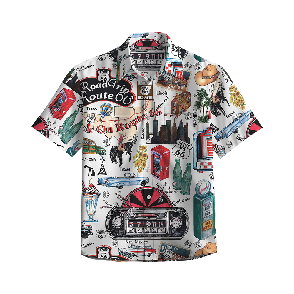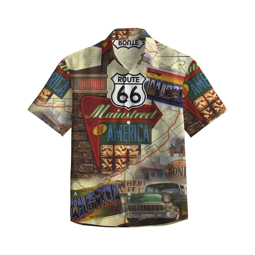 100% Cotton Men's Multicolor Road 66 Pop Print Short Sleeve Shirt