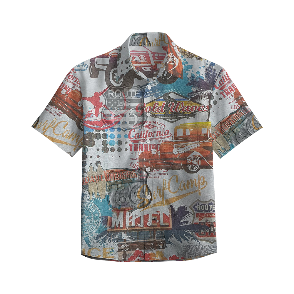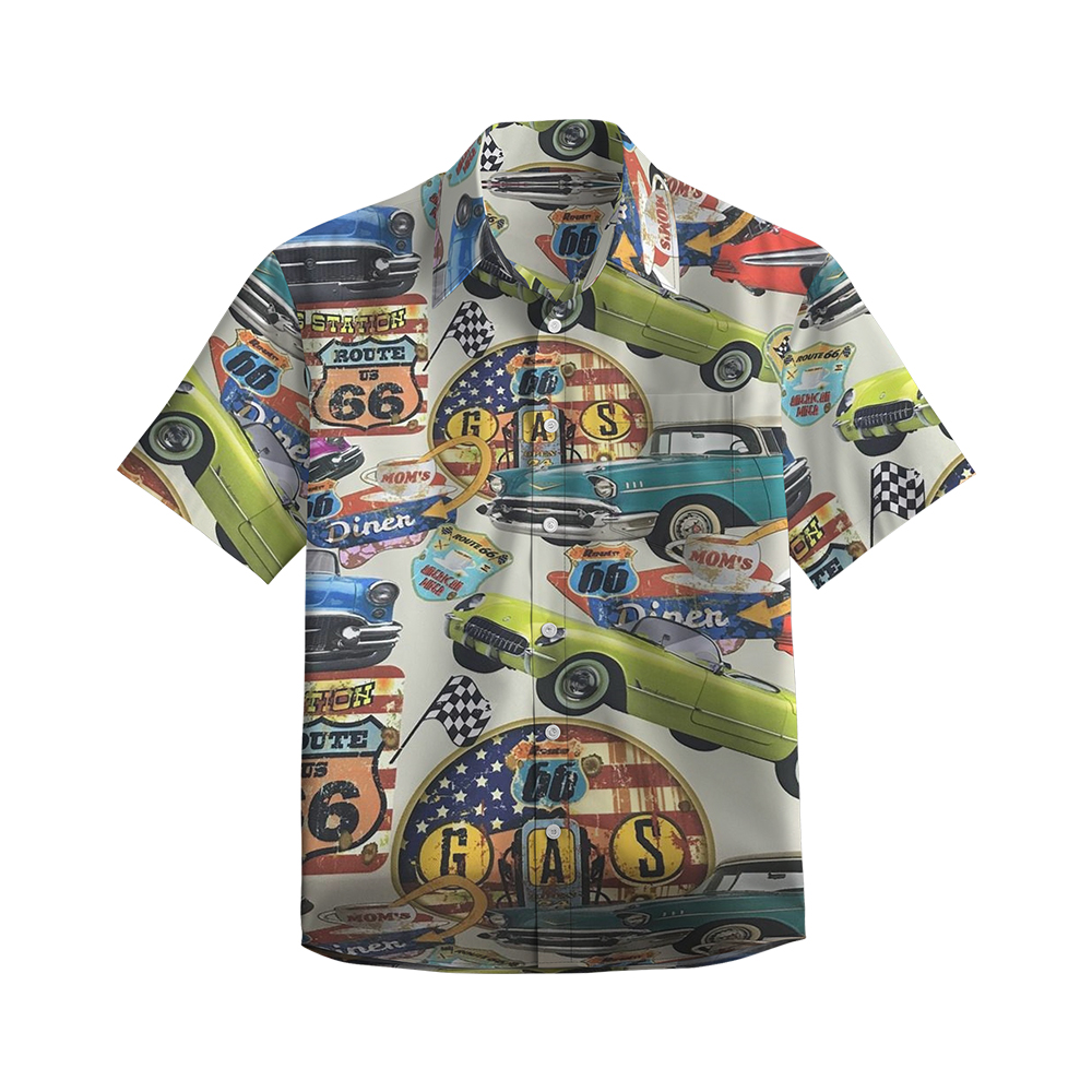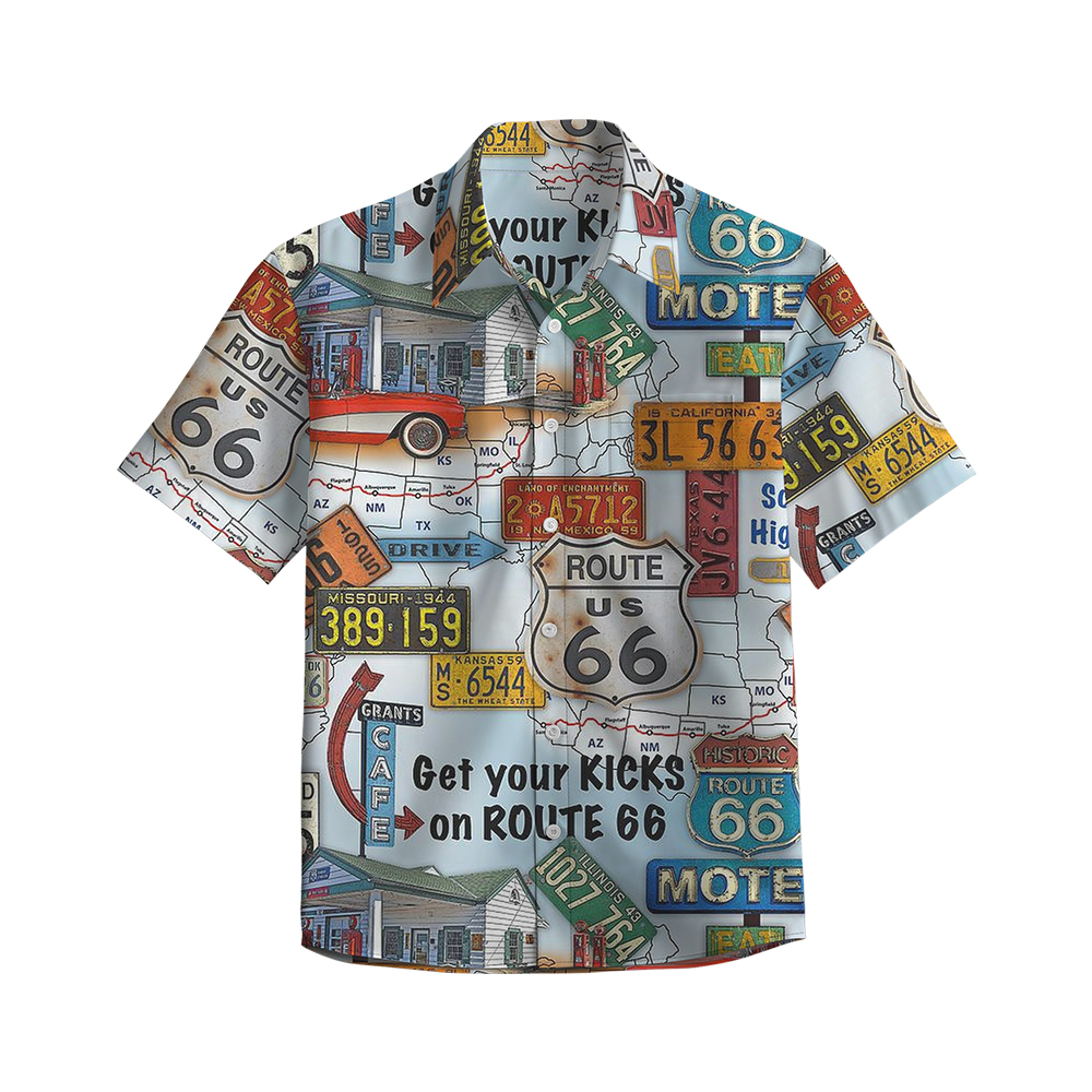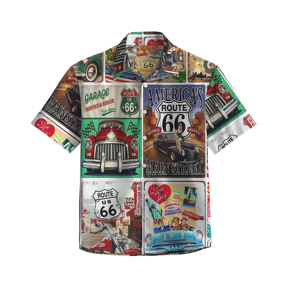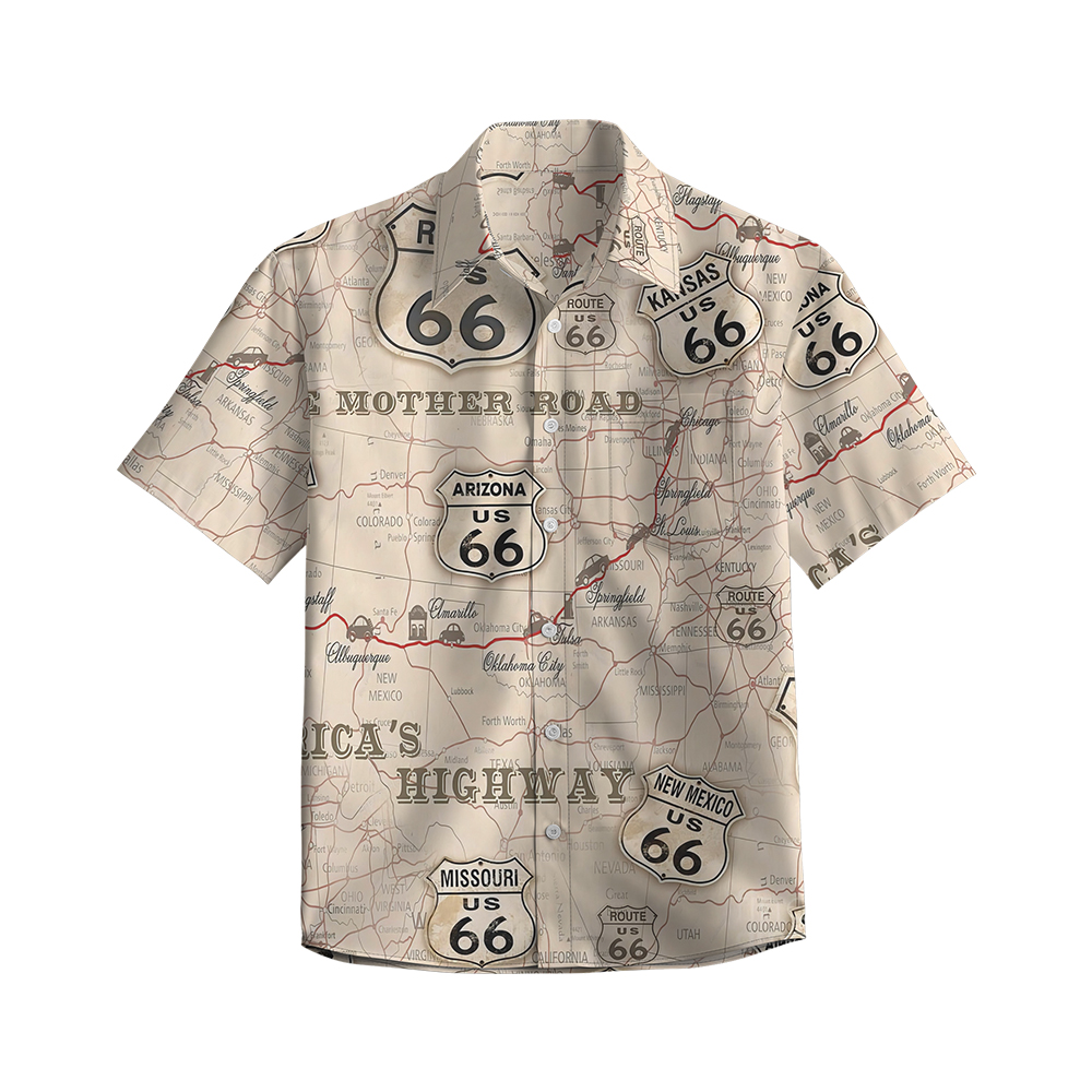 100% Cotton Men's Multicolor Road 66 Pop Print Short Sleeve Shirt