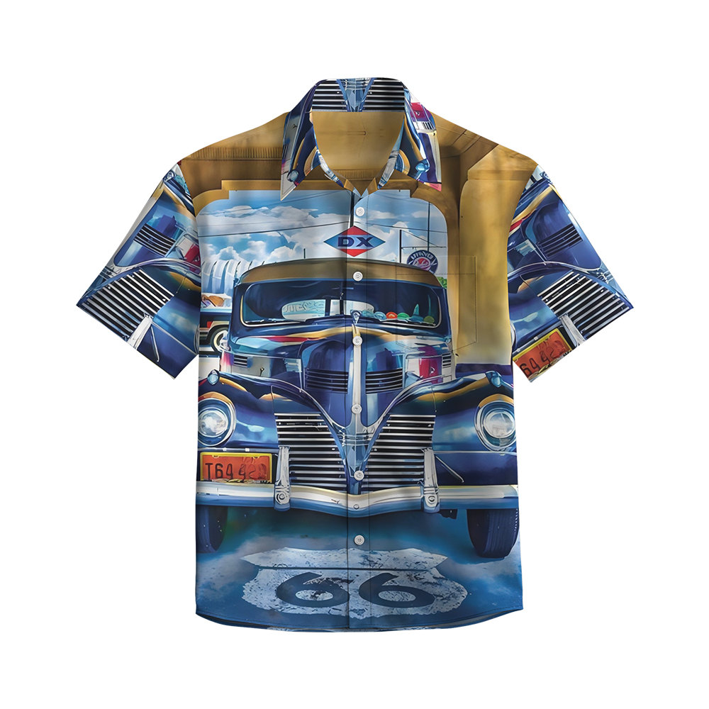 100% Cotton Men's Blue Vehicle Pop Print Short Sleeve Shirt