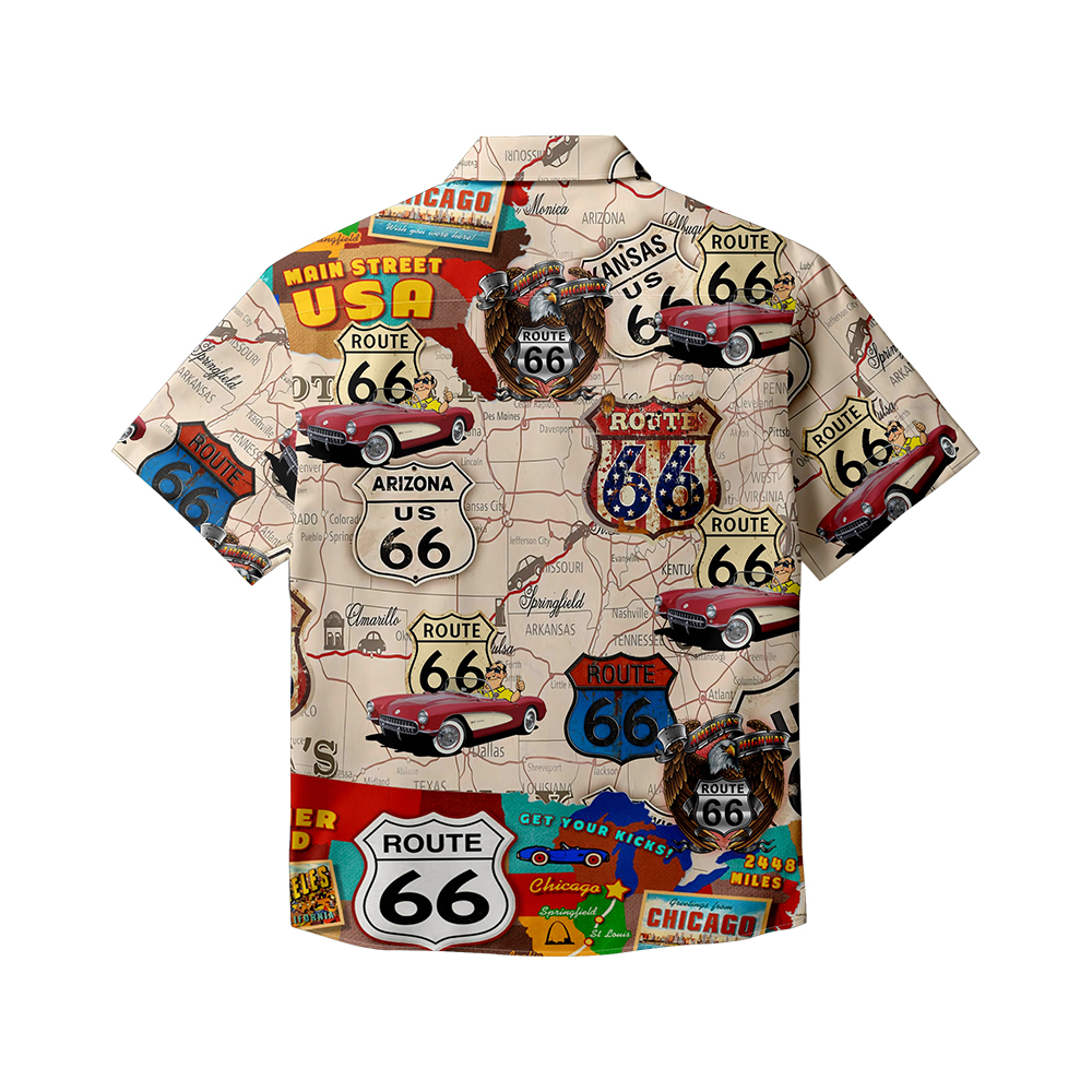 100% Cotton Men's Beige Hawaii Map Print Short Sleeve Shirt